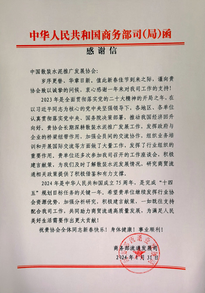 中国散装水泥推广发展协会信息网 2024-02-01 来源:中国散协秘书处