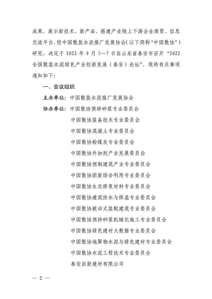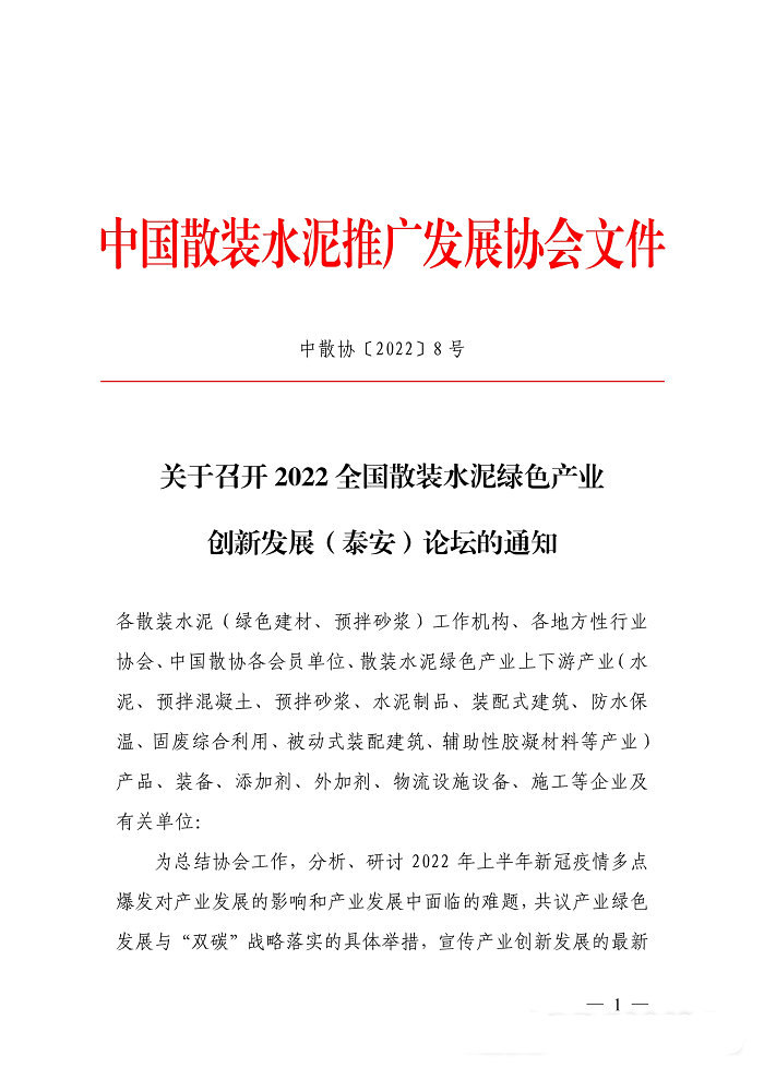关于召开“2022全国散装水泥绿色产业创新发展(泰安)论坛”的预通知