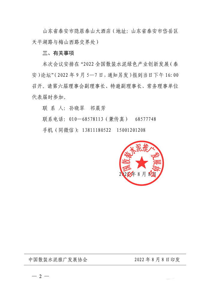 关于召开2022全国散装水泥绿色产业创新发展(泰安)论坛的通知
