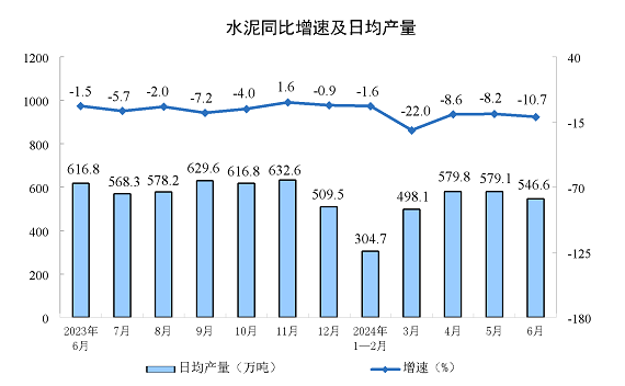 6月份,全国单月水泥产量16397万吨,同比下降10.7%;1—6月份,全国水泥产量85047万吨,同比下降10%。