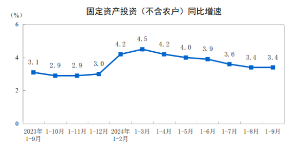 三、2024年1—9月份全国固定资产投资增长3.4%
