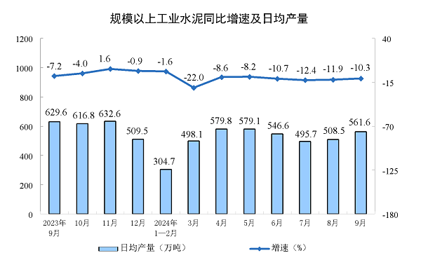9月份,全国单月水泥产量16847万吨,同比下降10.3%;1—9月份水泥产量132670万吨,同比下降10.7%。