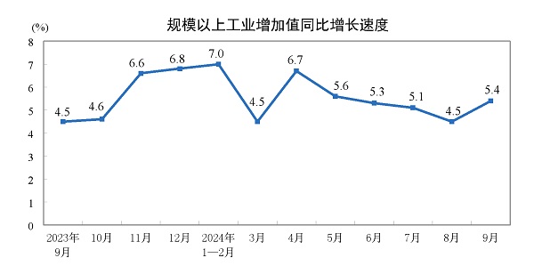 一、2024年9月份规模以上工业增加值增长5.4%