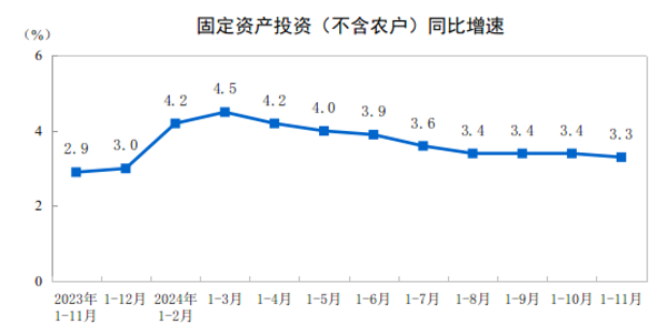 三、2024年1—11月份全国固定资产投资增长3.3%