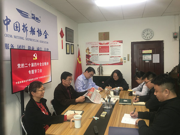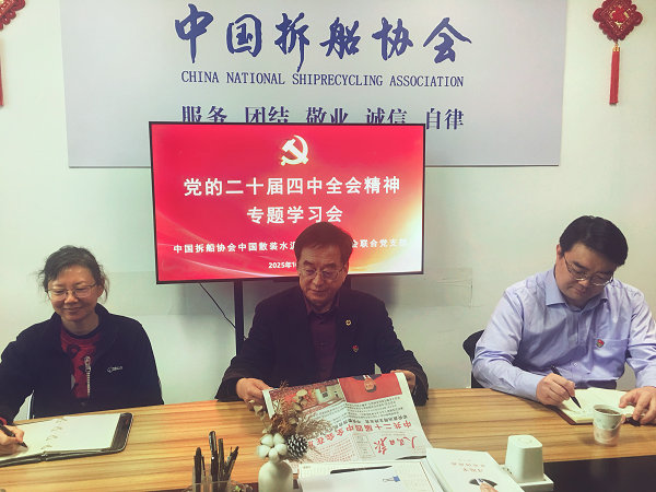 10月30日,中国拆船协会、中国散装水泥推广发展协会联合党支部召开专题学习(扩大)会,集中学习了习近平总书记“关于《中共中央关于制定国民经济和社会发展第十五个五年规划的建议》的说明”,以及《中国共产党第二十届中央委员会第四次全体会议公报》,通过座谈学习交流,部署学习宣传落实的具体任务与措施。联合党支部书记、中国拆船协会执行会长兼秘书长谢德华主持学习会。青年理论学习小组组长、中国散装水泥推广发展协会副理事长兼秘书长孙岩、中国拆船协会副会长李燕斐以及入党积极分子参加学习会。
