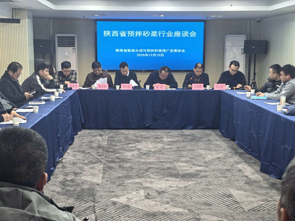 2025年12月15日下午,陕西省散装水泥与预拌砂浆推广发展协会在西安富森城市酒店召开预拌砂浆行业高质量发展专题座谈会,会长彭赵彪主持,省工信厅原材料工业处领导、会员单位及行业企业代表出席。