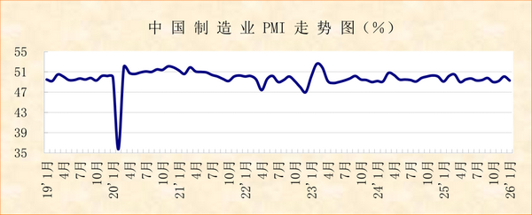 国家统计局服务业调查中心、中国物流与采购联合会发布的2026年1月份中国制造业采购经理指数(PMI)为49.3%,较上月下降0.8个百分点,显示制造业运行有所波动。从分项指数以及不同行业的指数变化来看,1月我国制造业市场需求有所收紧,但企业生产保持扩张态势,原材料和产成品价格联动上升,产业结构继续优化,制造业后市回稳运行具备基础。