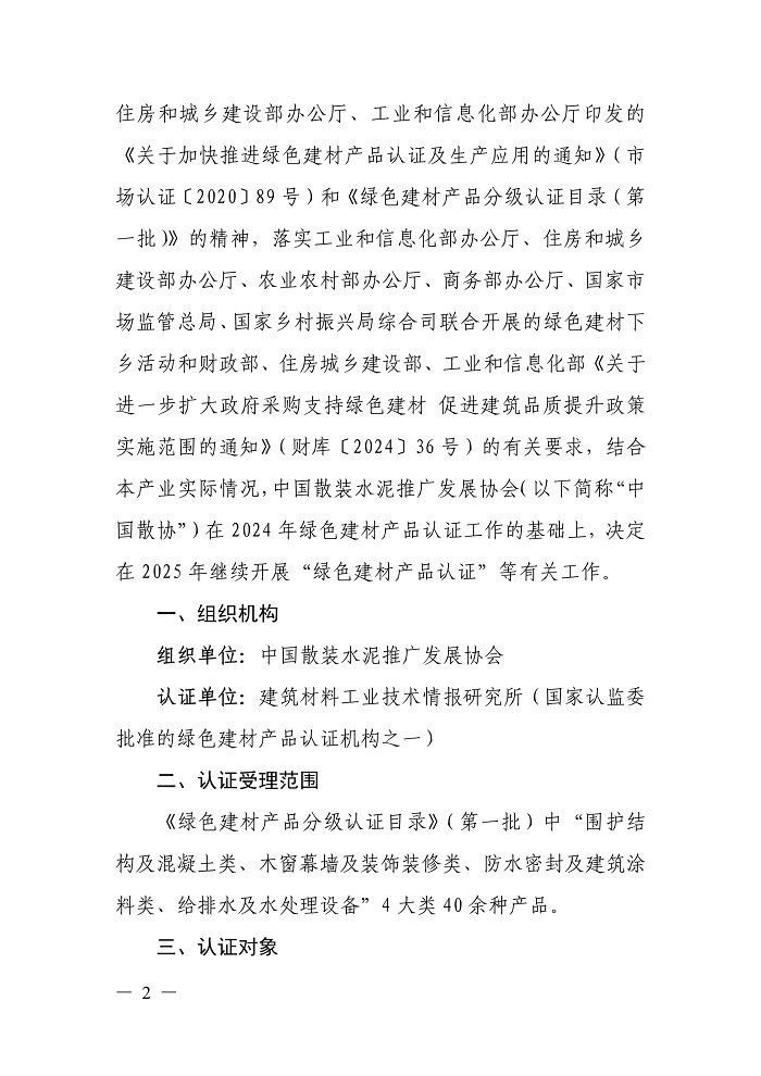 关于组织开展2025年“绿色建材产品认证”工作的通知